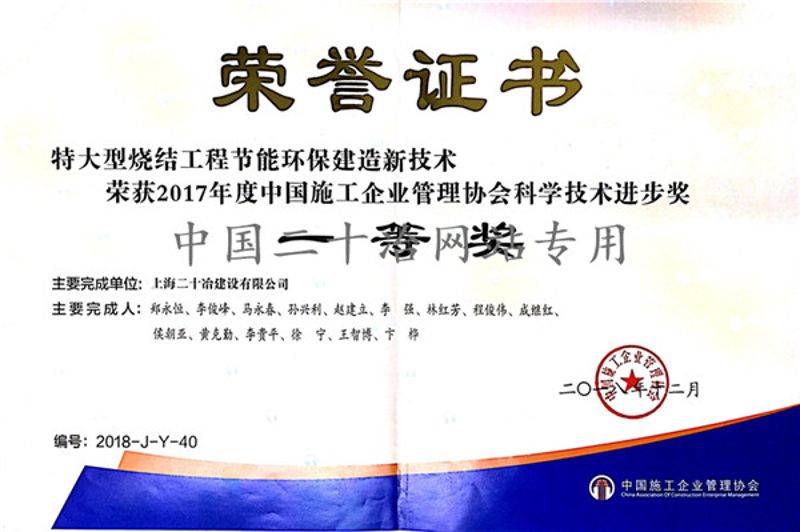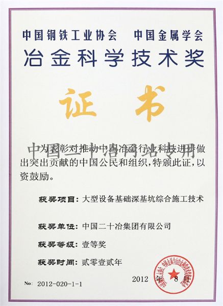 中冶集團(tuán)科學(xué)技術(shù)獎(jiǎng)