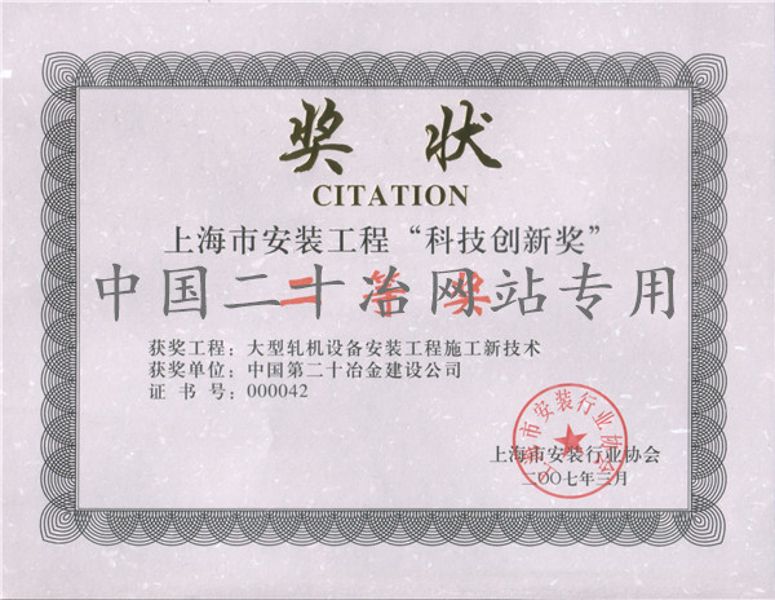 上海市安裝行業(yè)科技獎(jiǎng)