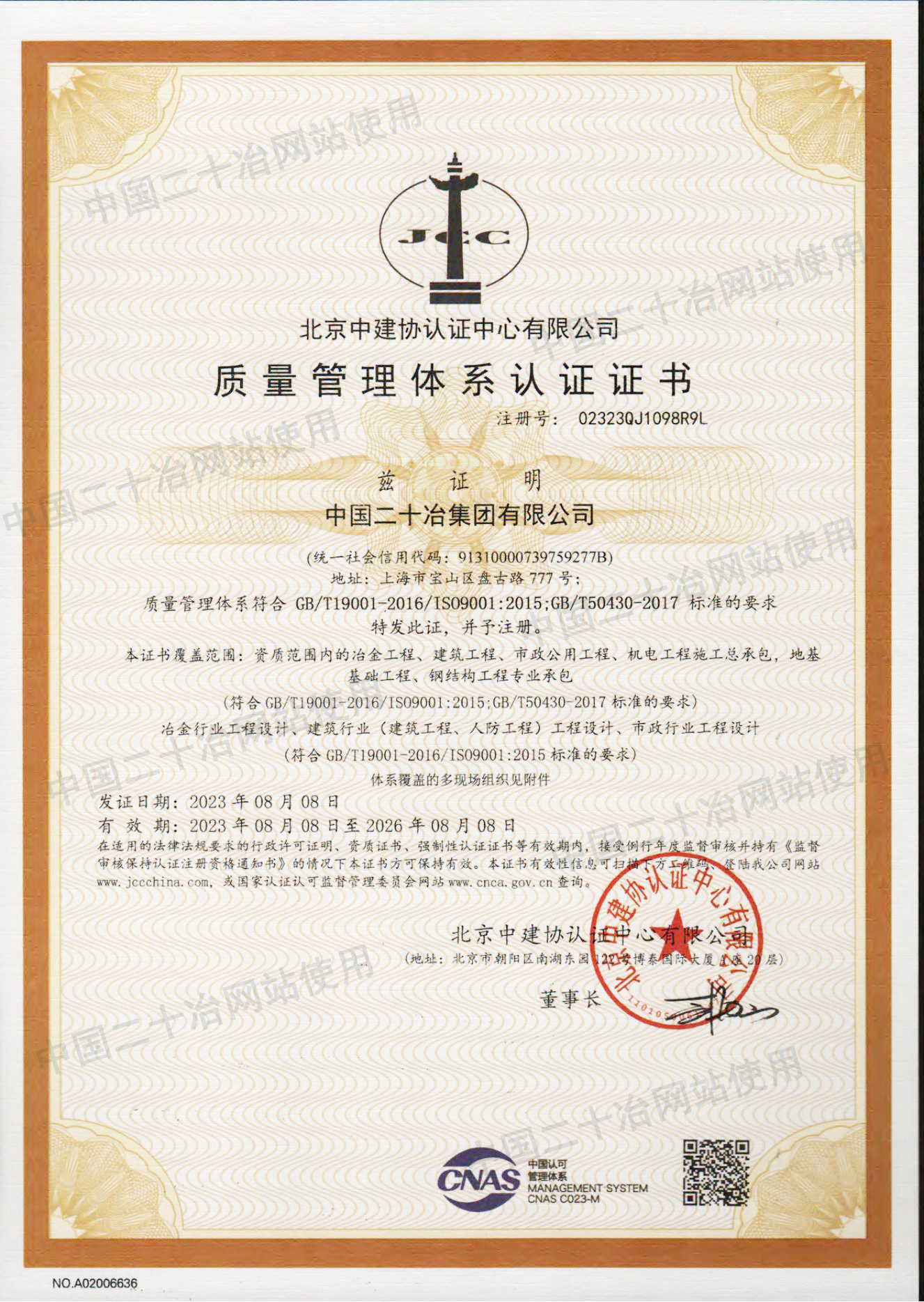 質(zhì)量管理體系認證證書