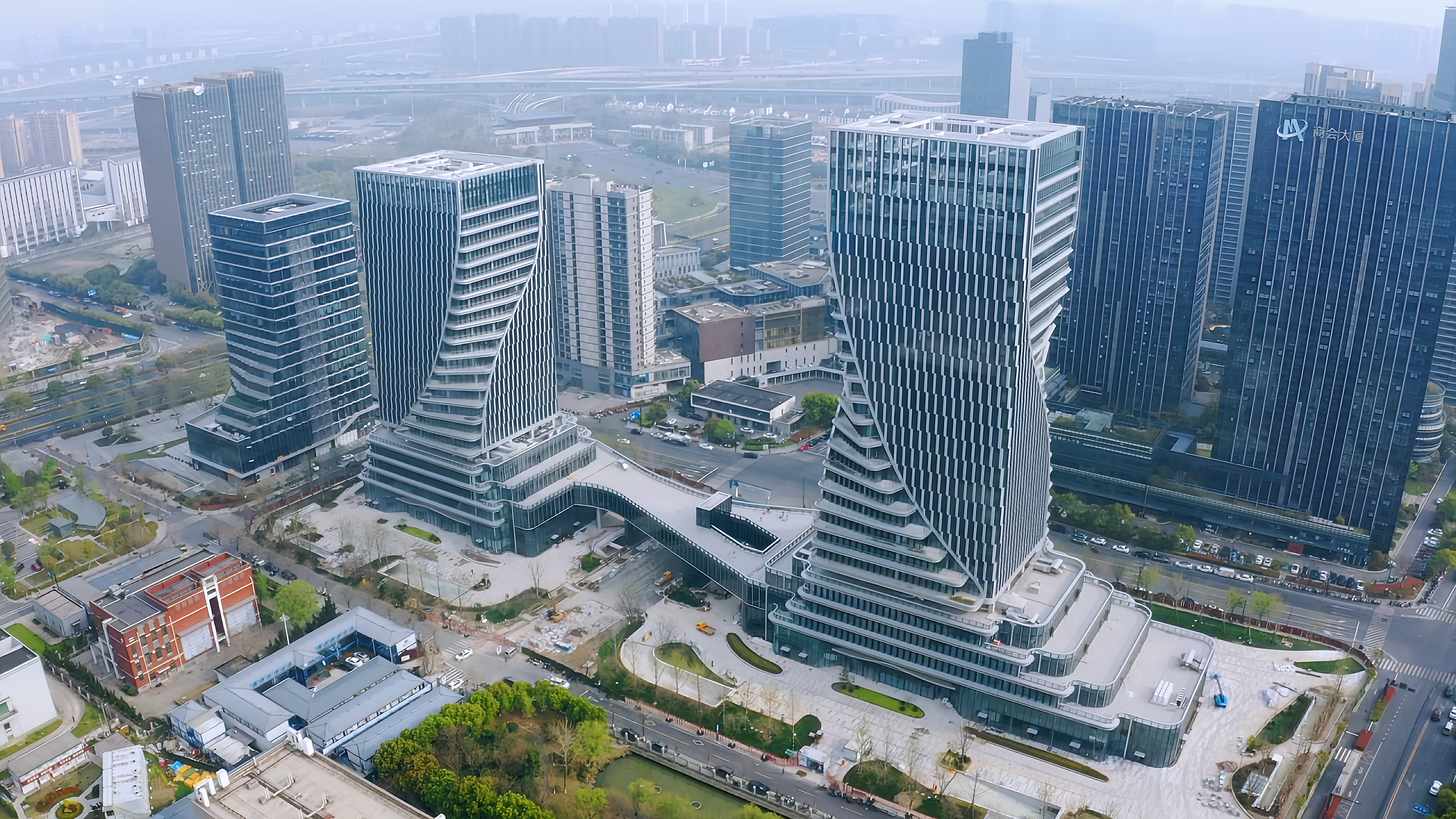 該項(xiàng)目位于杭州市余杭區(qū)臨平新城商務(wù)核心區(qū),是臨平新城地標(biāo)性建筑。47號(hào)地塊總建筑面積6.6萬(wàn)平方米,48號(hào)地塊總建筑面積5.4萬(wàn)平方米。該工程高層建筑物均為框架-核心筒結(jié)構(gòu),裙房為框架結(jié)構(gòu)。地上部分規(guī)則樓板采用PC構(gòu)件(樓板采用桁架鋼筋混凝土疊合板),其他部分為現(xiàn)澆鋼筋混凝土結(jié)構(gòu)(含勁性鋼柱),兩主樓間裙房三層為單層跨雪海路鋼連廊。